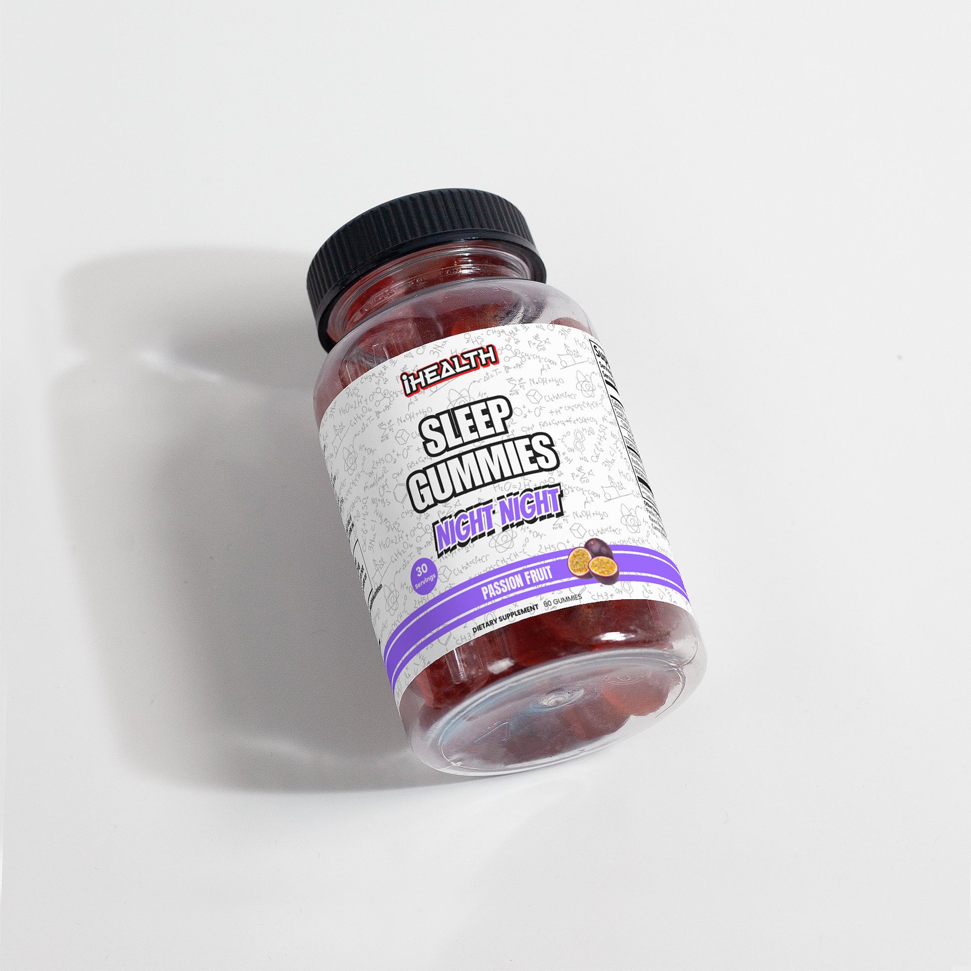 Ingredients: Passiflora Extract (Passiflora incarnate)(herb), Vitamin B6 (as Pyridoxine Hydrochloride), Melatonin, Glucose Syrup, Sugar, Glucose, Pectin, Citric Acid, Sodium citrate, Natural Passion fruit flavor, Vegetable Oil (contains Carnauba Wax), Purple Carrot Juice Concentrate (Color).